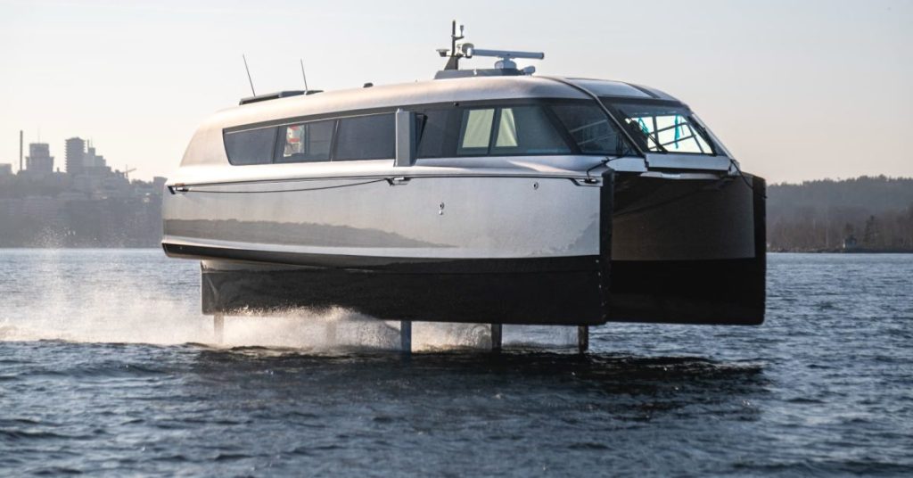 Instead of plowing through waves, the P-12 uses a computer-controlled hydrofoil system with underwater wings that lift the hull above the surface. Once up on foil, the boat essentially “flies” over the water, dramatically reducing drag, noise, and motion.